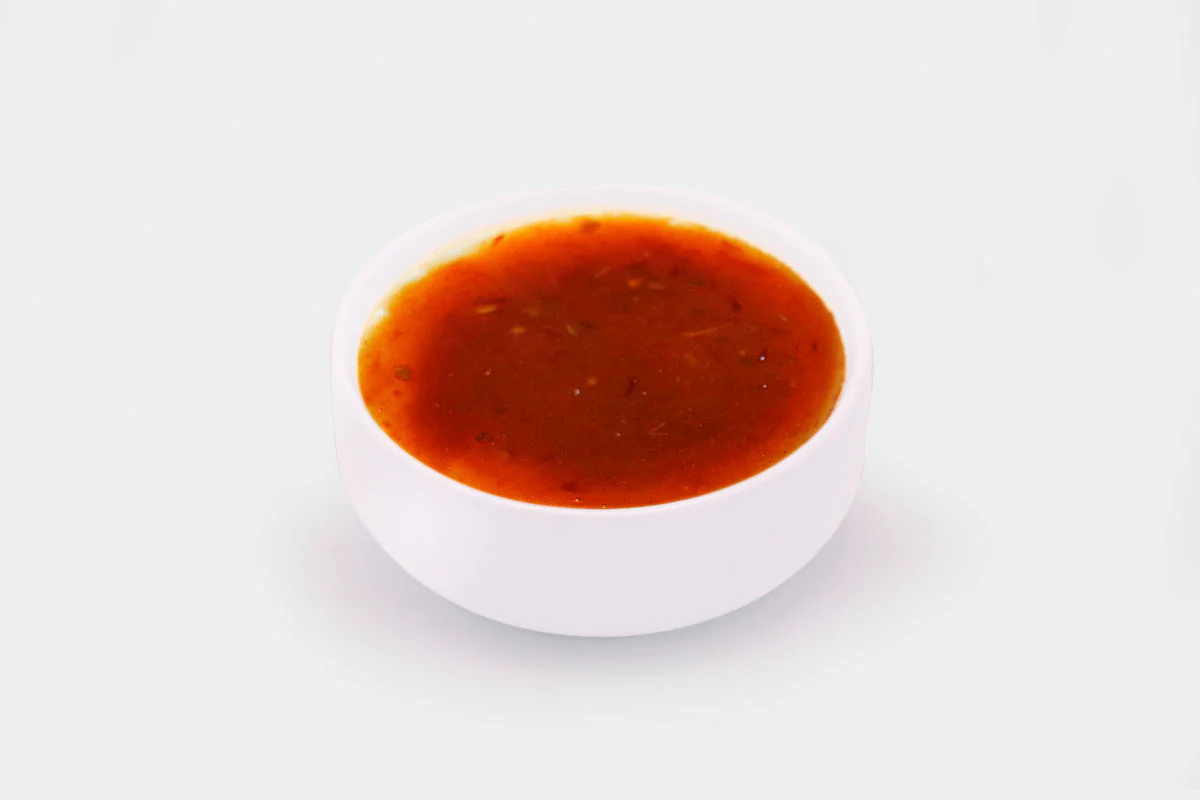 2-ounce side of sweet and savory gochujang Korean BBQ sauce, accented with red pepper flakes.