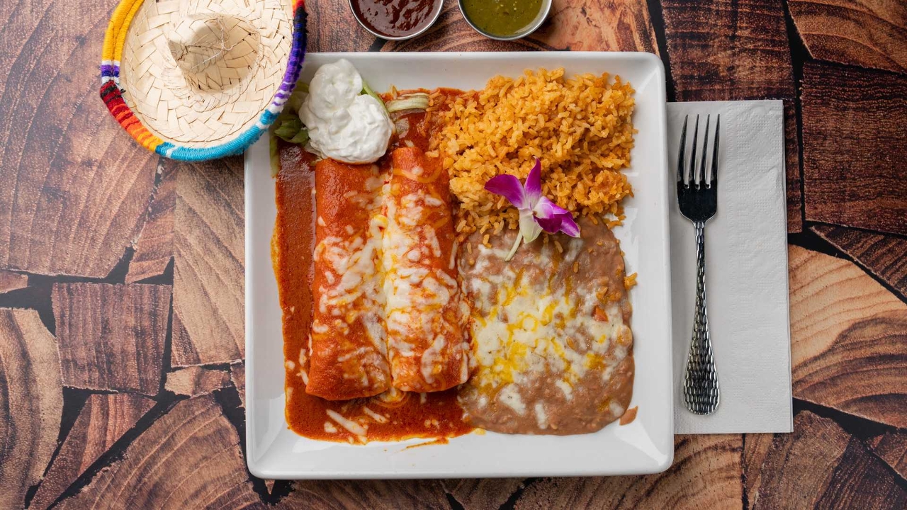Filled with rice, beans, cheese and pico de gallo inside select your favorite protein