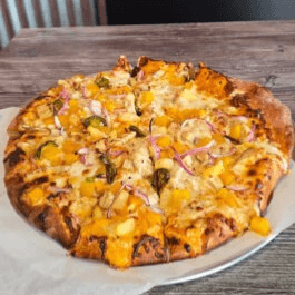 A street-food favorite on a pizza, savory marinated pastor diced Pork, Pineapple, Peppers, and Onions, baked to perfection