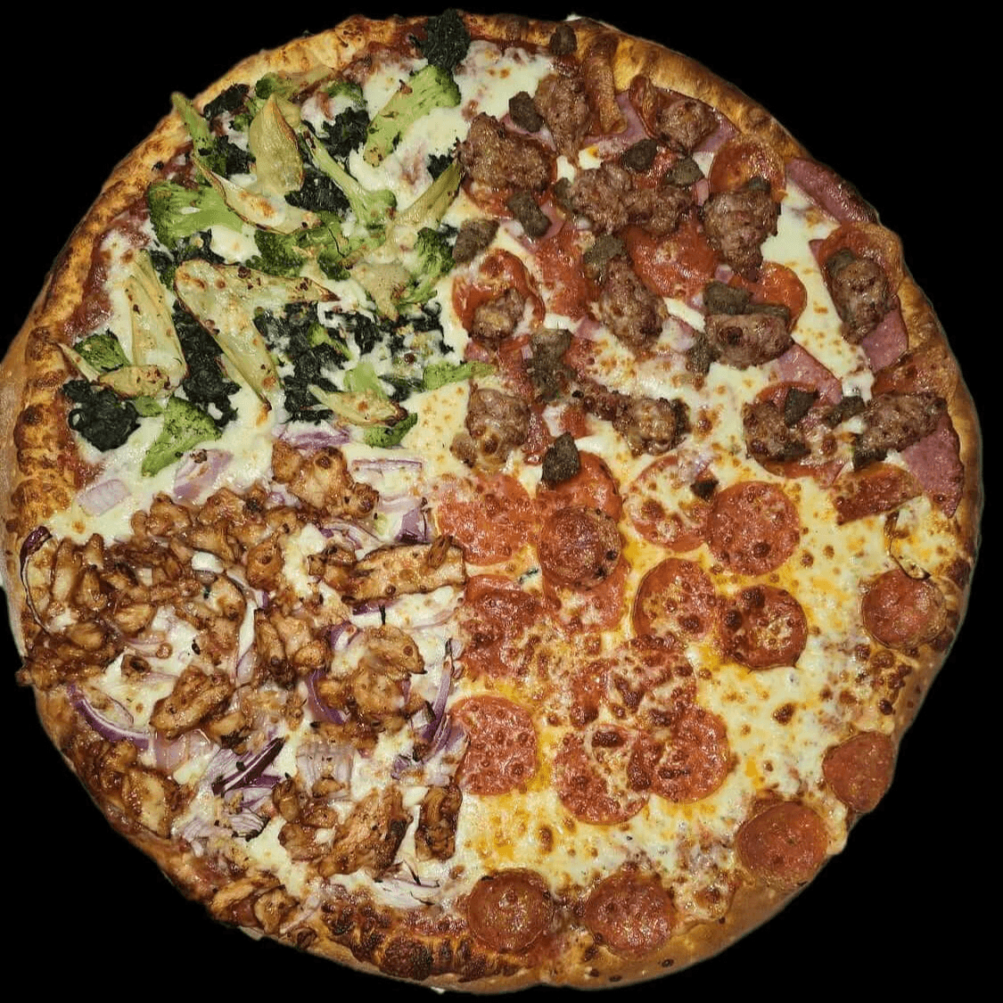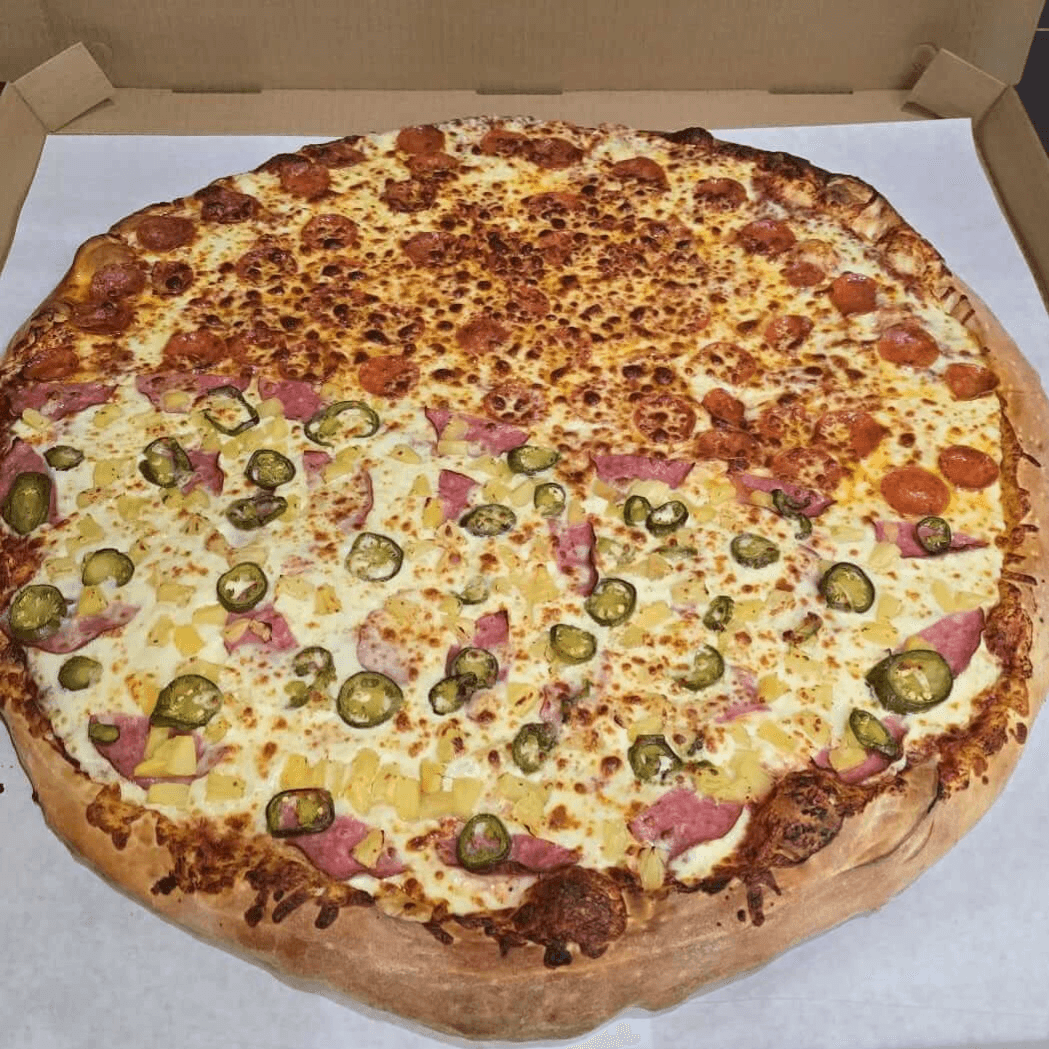 Choose different pizza toppings/specialties on each quarter, yes we love to spoil you.