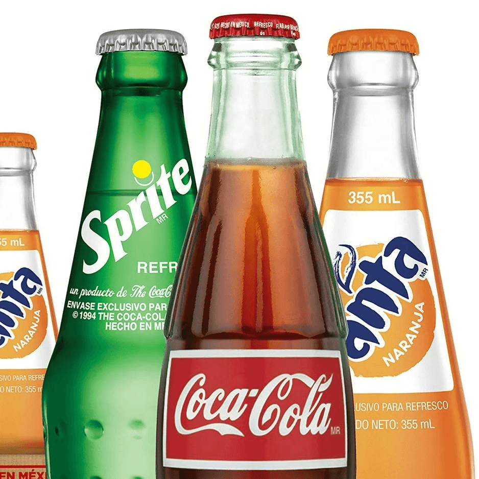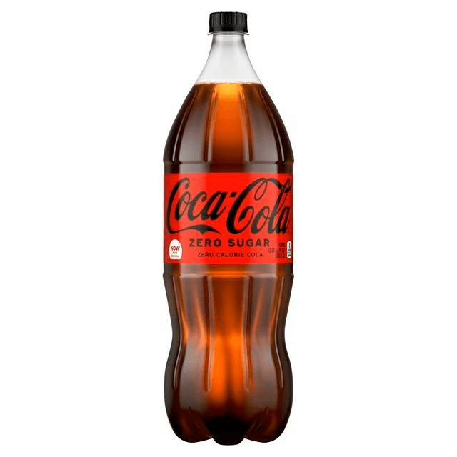 With regular sauce, mozzarella cheese and Coca-Cola 2-liter soda