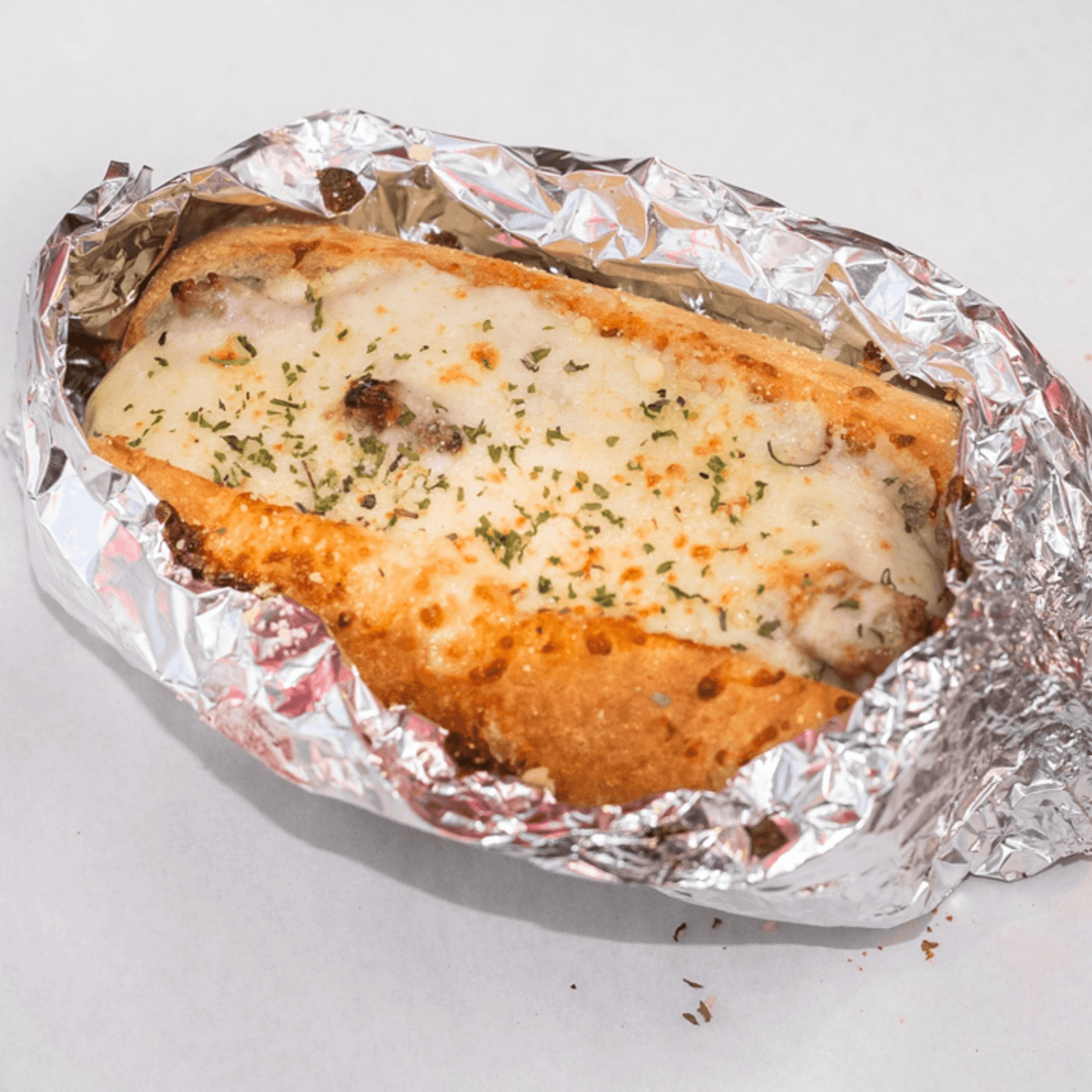 Perfectly grilled chicken, sautéed mushrooms, green bell peppers, onions, garlic, jalapeños, mayo, topped with melted mozzarella cheese